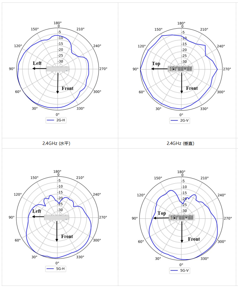 2、组合 2.4GHz或 5GHz 所有天线后,等效天线增益:2.4GHz:2dBi,5GHz:3dBi