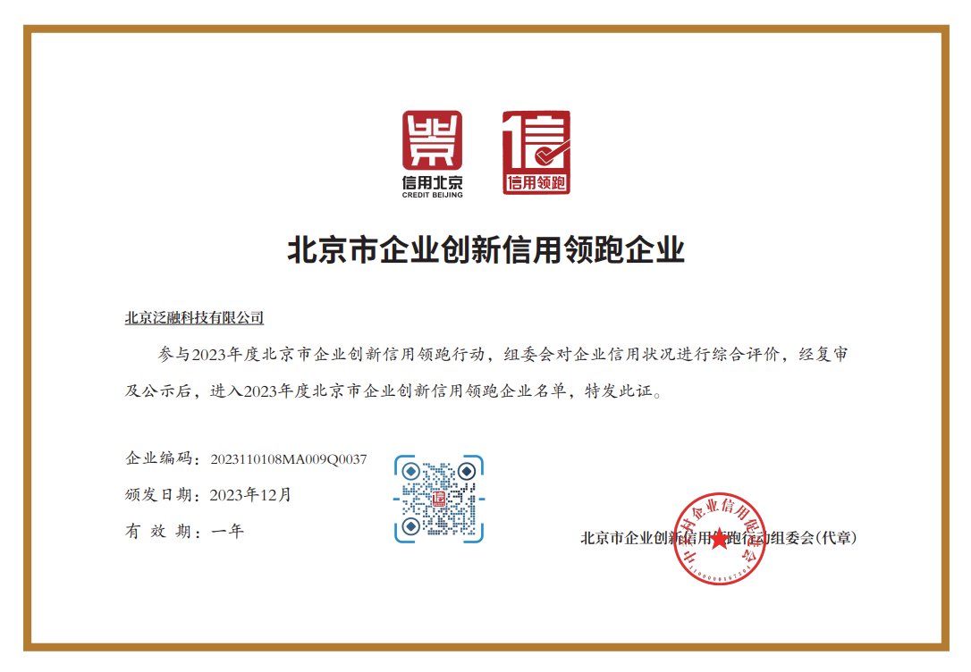 k8凯发和泛融科技获评2023年度北京市企业创新信用领跑企业